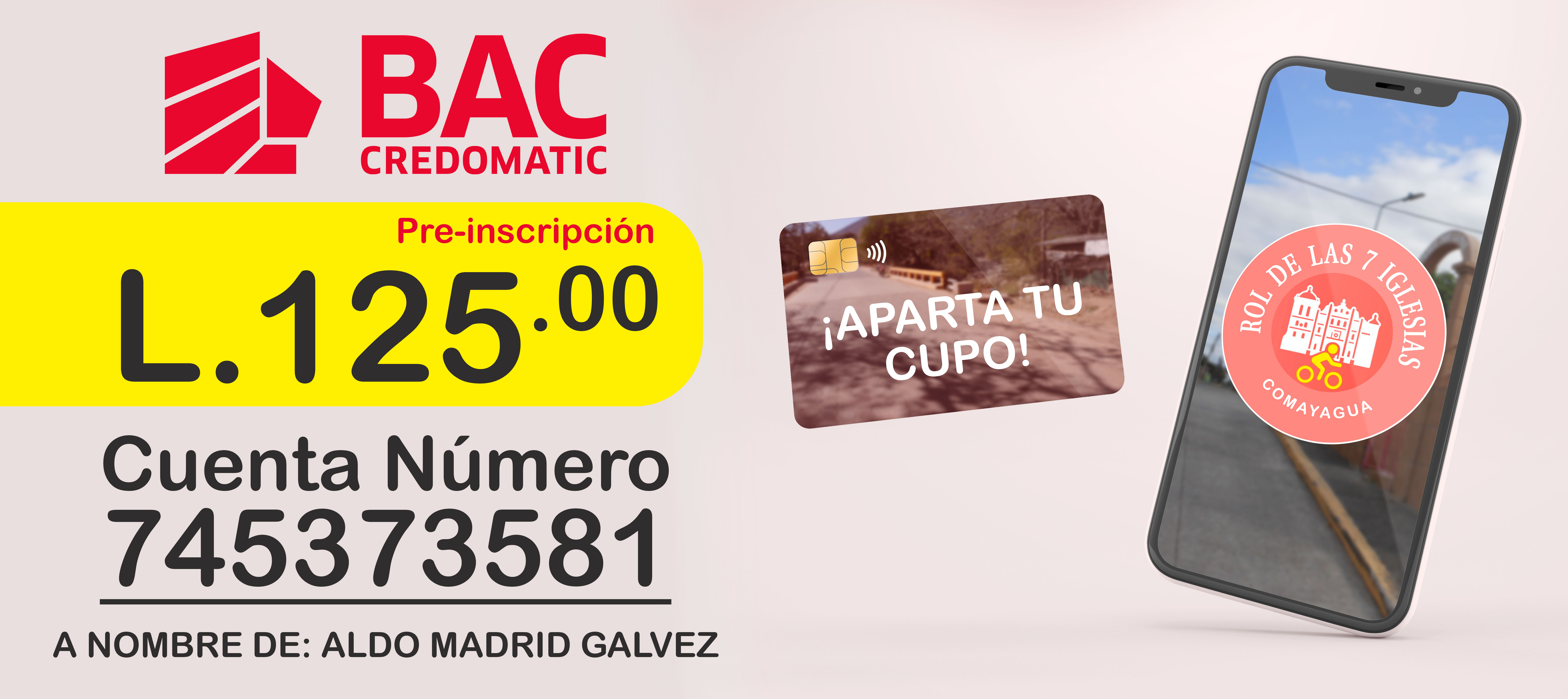 Puedes realizar tu pago L.125 a la cuenta de BAC número: 7453 7358 1